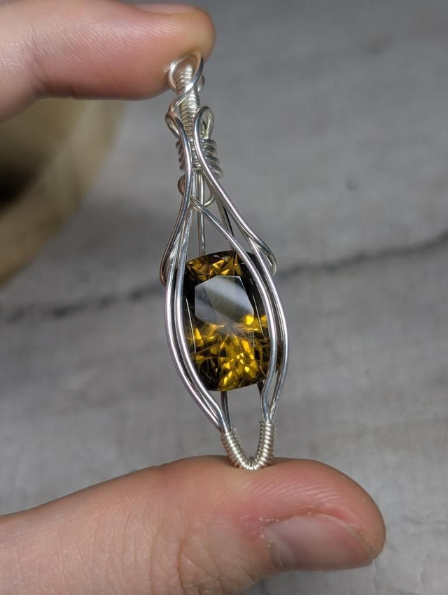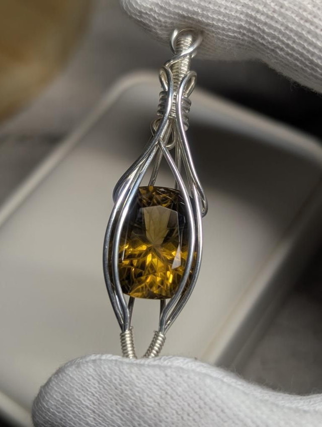 Superbe pendentif artisanal mettant en valeur une citrine naturelle de 18,39 carats, taillée avec précision pour révéler tout son éclat et ses reflets dorés chaleureux.
